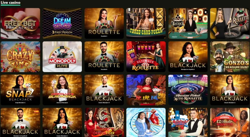 VÄr live casino-sektion ger den Àkta bordskÀnslan till din skÀrm med studiokvalitetsstreaming och ett utbud som inte stannar vid det grundlÀggande. Betrix Casino erbjuder för nÀrvarande 282 live casinospel, inklusive flera roulette- och blackjackalternativ frÄn respekterade liveleverantörer som Evolution, Ezugi och Pragmatic.