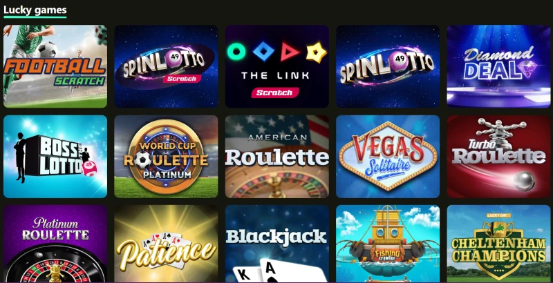 Bredvid det erbjuder vĂ„r Lucky-spel-kategori (för nĂ€rvarande 35 spel) lĂ€ttare, instant-stil underhĂ„llningâperfekt nĂ€r du vill ha nĂ„got enkelt, snabbt och annorlunda frĂ„n standardhjul. Det Ă€r ett smart sĂ€tt att bryta upp dina sessioner: slots för djup, bord för struktur och specialformat nĂ€r du vill ha snabbhet och variation utan inlĂ€rningskurva.